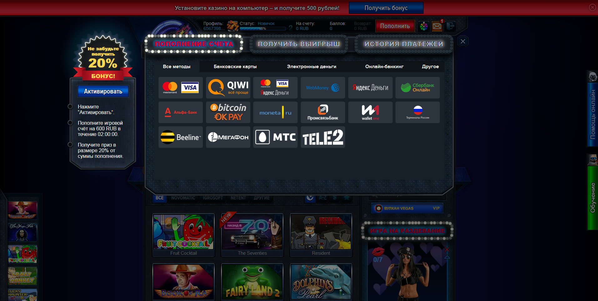 • Скачать обновления (Скрипт казино вулкан с модулем - раздень девушку) 💊